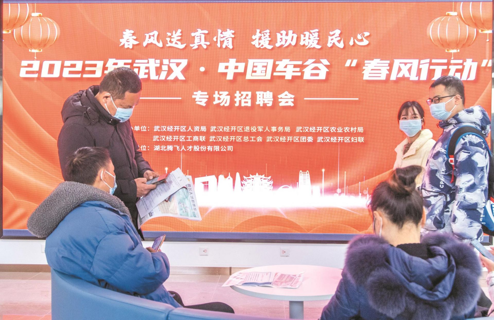 1月28日,武汉经开区2023年“春风行动”首场招聘会在中国车谷人力资源产业园举行,51家企业提供4300多个工作岗位,满足不同类型各个层次人才的就业需求。