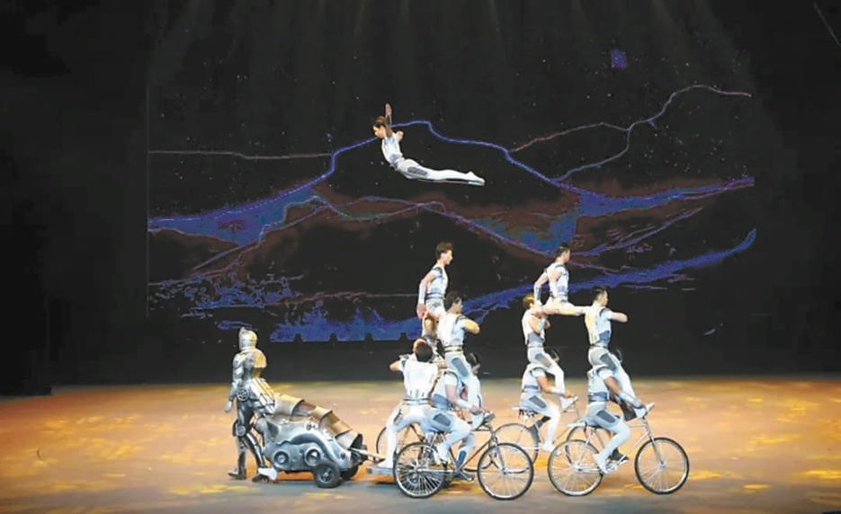 《金牌杂技闹新春》中上演今年央视春晚《勇往直前》的“同款”男子集体车技节目《逐风者》。