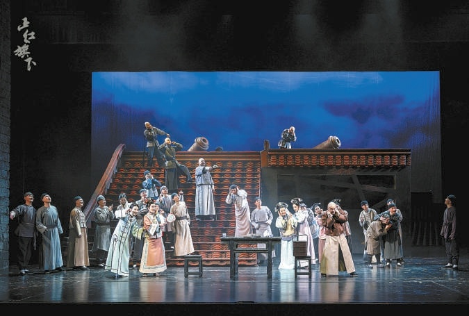 拉开大幕,《正红旗下》的整个舞台视觉表达就区别于以往传统的人艺京味话剧。不见熟悉的市井小院、京城宅门,而是代之以红色的屋顶、整齐的琉璃瓦,用写意象征的元素呈现出老北京城的特点,同时也鲜明地表达着一种独特视角。