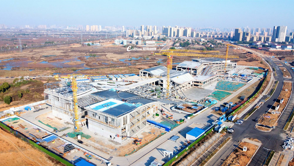 中法生态城文化体育活动中心是中法生态城的地标性建筑,位于琴润大道以北、知音湖大道以东。目前,该文化体育活动中心主体结构已封顶,正在进行二次构造和精装修施工。