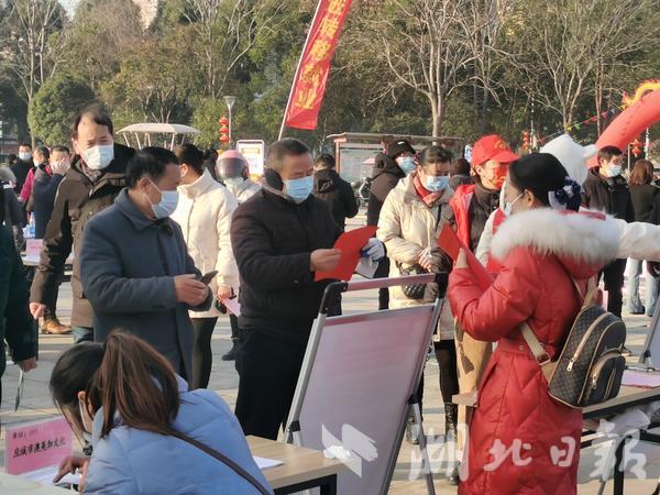 1月30日,农历正月初九。由应城市人力资源和社会保障局主办的“春风行动”在应城文体广场举行,来自市内外120多家企业为群众提供5000多个岗位。让更多人实现家门口就业。