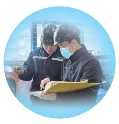河北省天冰冰雪设备张家口有限公司重八车间职工在研讨问题。 董申林摄 |