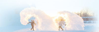 黑龙江省漠河市北极村神州北极广场,游客们在体验“泼水成冰”。 莫 文摄 |