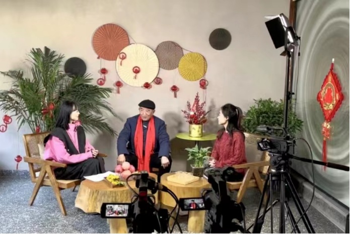 春节期间,张如亭通过直播平台宣介忻州古城。人民网记者 孙阳摄