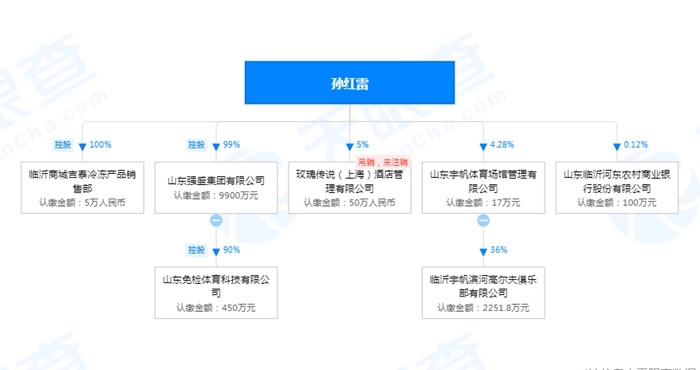 山东宇帆体育场馆管理有限公司旗下还有一家公司,名为临沂宇帆滨河高尔夫俱乐部有限公司,不过孙红雷对山东宇帆体育场馆管理有限公司持股比例并不高,仅为4.28%。
