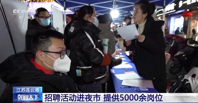 依托当地夜市的人流量,江苏连云港近日把招聘会搬进了夜市,42家企业提供了5000多个岗位。