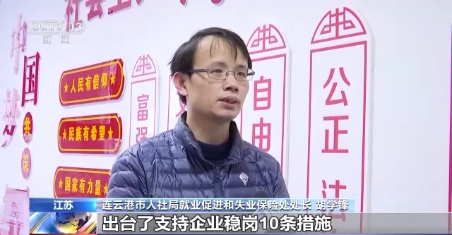 连云港市人社局就业促进和失业保险处处长 胡学锋:出台了支持企业稳岗10条措施,今年1月至2月,对首次来连云港就业人员,按照每人500元标准给予交通补助。