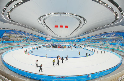 冰面上,前来体验的游客越来越多。“我们是第一次来‘冰丝带’,一进来就感觉特别开阔明亮。”带着儿子来滑冰的郝先生说。