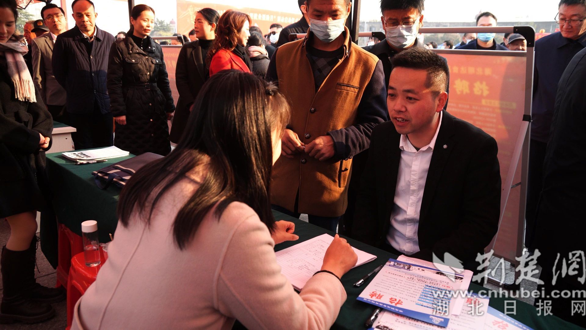 求职者咨询福利待遇。记者 李传维 摄