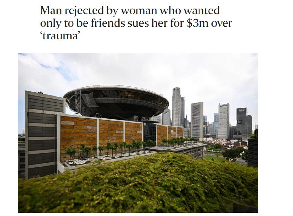 据新加坡《海峡时报》1月31日报道,新加坡的一名男子Kawshigan向自己的女性友人谭女士表白后被拒,因无法接受这一事实,将谭女士告上法庭索赔300多万美元。
