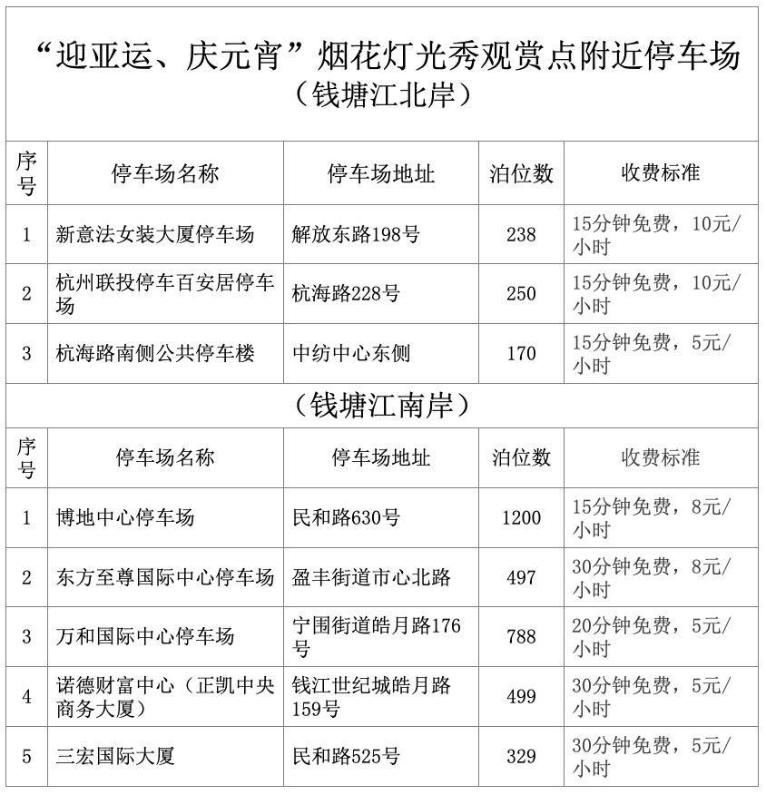 盛典期间活动现场周边道路交通压力大,停车位紧缺,建议大家根据当日交通管制方案,安排好时间,合理规划出行方式。自驾出行的市民朋友可将私家车停靠在地铁站周边P+R停车场,再换乘地铁前往。或者提前将车辆停放在观礼区外围周边停车场,不要乱停乱放妨碍交通。市城管局轨道公用中心为大家整理了市区主要P+R停车场和烟花观礼区外围附近停车场清单,并附有具体收费标准。