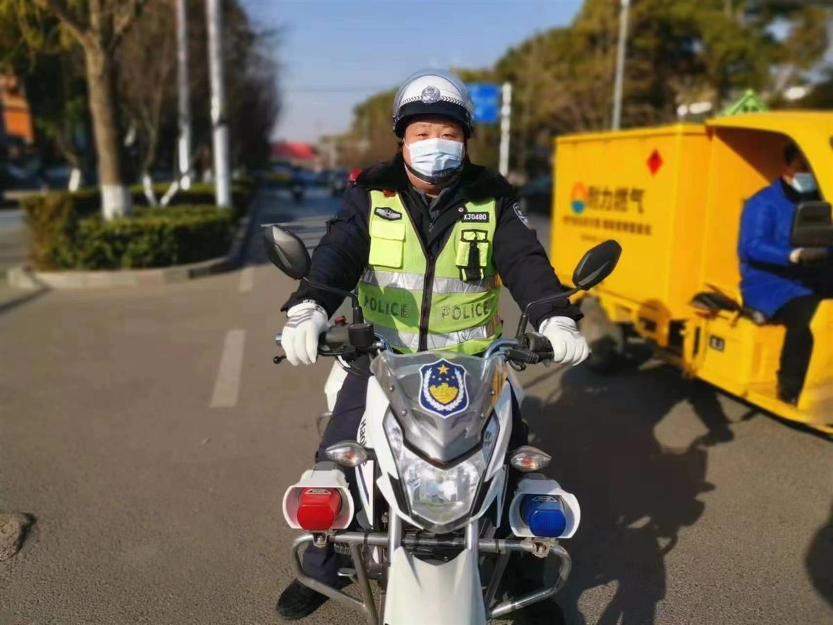 正在路面执勤的交警大队民警杨颢接到指到令后,迅速驾驶警用摩托车与送医车辆汇合,一路引导送医车辆至医院。因地面结冰,杨颢不慎摔倒,但他强忍疼痛,继续引导送医车辆,直到医护人员将患者送进急诊室。