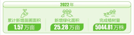 云南省扎实推进城乡绿化美化工作,2022年累计新增苗圃面积1.57万亩,新增绿化面积25.28万亩,完成植树量5044.81万株。