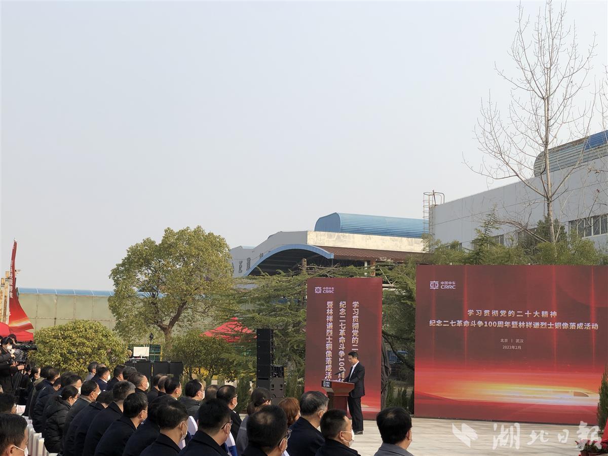 湖北日报讯(记者严运涛、通讯员陈宇、丁莉芬)2月7日,中国中车纪念“二七”革命斗争100周年暨林祥谦烈士铜像落成活动,通过视频联动方式在武汉、北京两地同步举行,武汉会场设在中车长江公司二七红色教育基地,北京会场设在长辛店二七纪念馆。