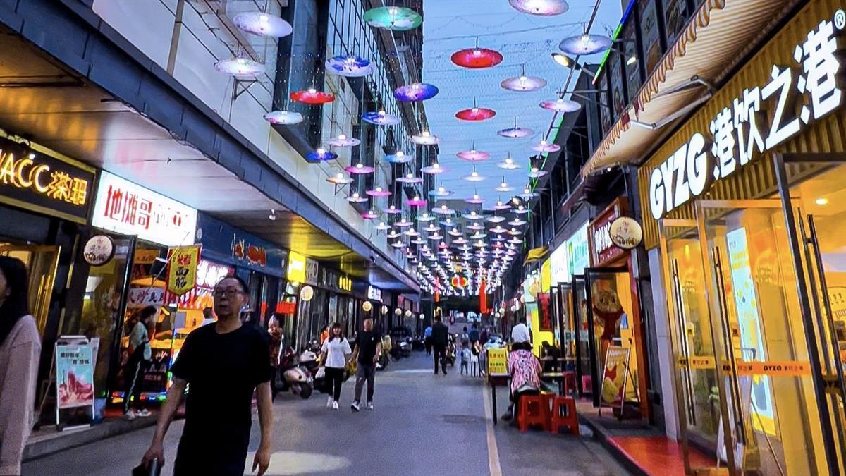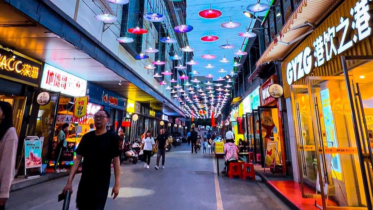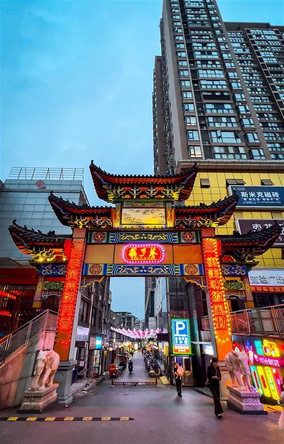 夜幕渐渐降临,街上五颜六色的霓虹灯亮了起来,筷子巷成了灯的海洋