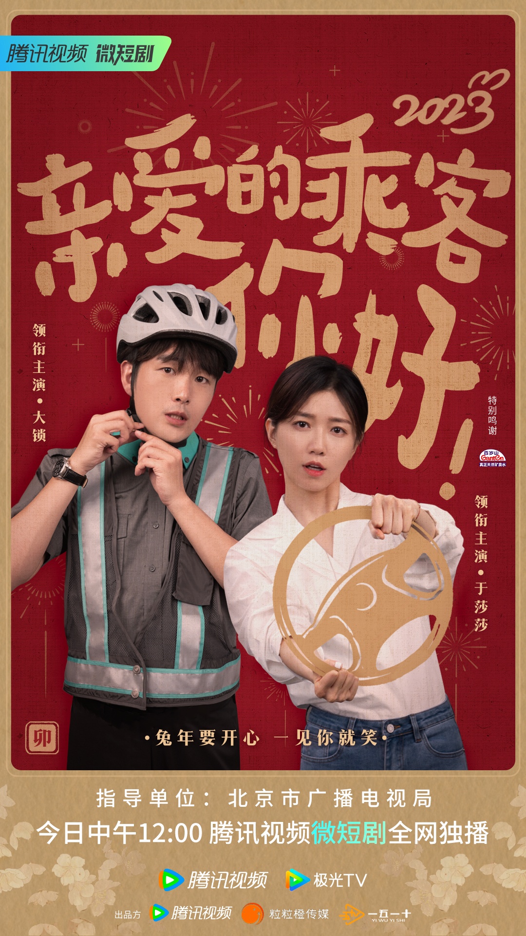 大锁、于莎莎领衔主演的国内首部司乘视角轻喜剧《亲爱的乘客,你好》于2月8日中午12点在腾讯视频微短剧全网独播。