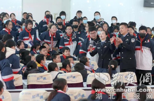 荆楚网(湖北日报网)讯(通讯员 黄翔、吴亚琪、李心一)“请同学们在平安树上粘贴平安寄语。”2月10日,湖北省荆门市沙洋县长林中学举行一次特别的普法安全宣讲,民警化身老师走进课堂,在授课中引导同学们写下平安寄语,一张张树叶形状的小纸片将讲台上的平安树装点得“枝繁叶茂”。