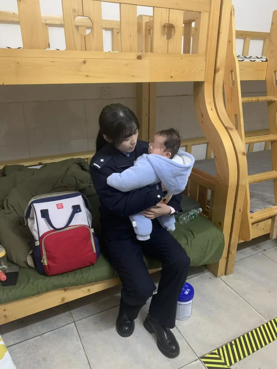 2月5日,湖北咸宁市公安局咸安分局永安派出所女警陈晶晶正在值班,同事们抓捕一名嫌疑人归来。与往常不同的是,还带回来了一位4个月大的小客人,而被抓捕的嫌疑人正是孩子母亲。