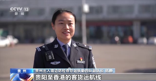贵州出入境边防检查总站执勤四队副队长 杨静:今年我们还开通了贵阳至香港的客货运航线。针对贵州农特产品出山,全力确保货运航线第一时间运营执飞,确保各个环节紧密衔接。