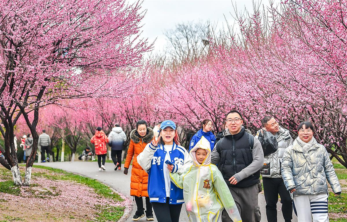 当日是双休日,尽管飘着小雨,但前来赏梅、拍梅的市民络绎不绝。