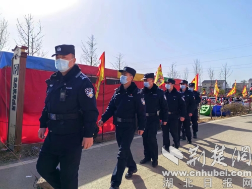 正月初一至正月十五,在新市街道白谷洞村,连续举行了15天京山市特色庙会民俗表演,日均接待游客1万余人。每日,游客们都能在景区看到一道靓丽的“红蓝”风景线,这是由市公安局新市派出所民辅警和鄢郝片区村辅警,以及廖承枫义警队队员组成的10余人巡防队伍,他们每天坚持开展巡逻防控和交通引导,期间未发生一起安全事故,为保障游客平安出行提供了最大警力、民力支持。