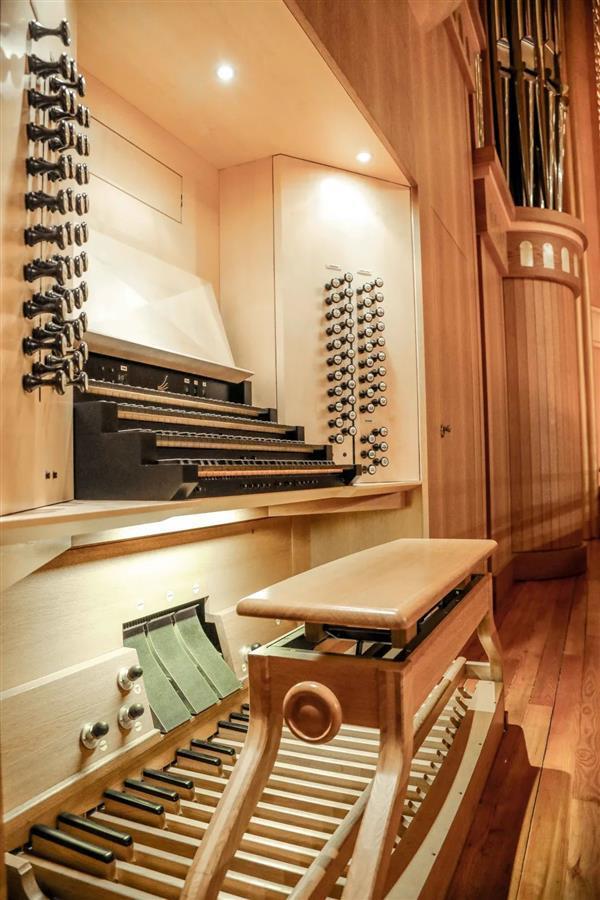 据介绍,琴台音乐厅的这台管风琴造价高达2300多万人民币,与德国科隆大教堂系出同门,被誉为音乐厅的“镇厅之宝”。舞台上,这台拥有68个音栓、4576根音管、两个演奏台组成的“巨无霸”乐器,占据了交响乐厅背后的整整一面墙。