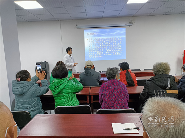 “中医看病讲究望闻问切,通过观察人体外在的一些信号,发现隐藏的疾病。”活动现场,王医生以“今天,你养生了吗?”为主题,以人体发出的健康“警报”为切入点,为居民们详细介绍了指甲上的小月牙、颈部的大包、高血压的高原红等常见身体现象及成因,同时就心脑血管疾病的保养和中医养生保健穴位耐心讲解。居民们一边认真听课,一边根据王医生的指示来身体自查,现场气氛热烈,互动不断。