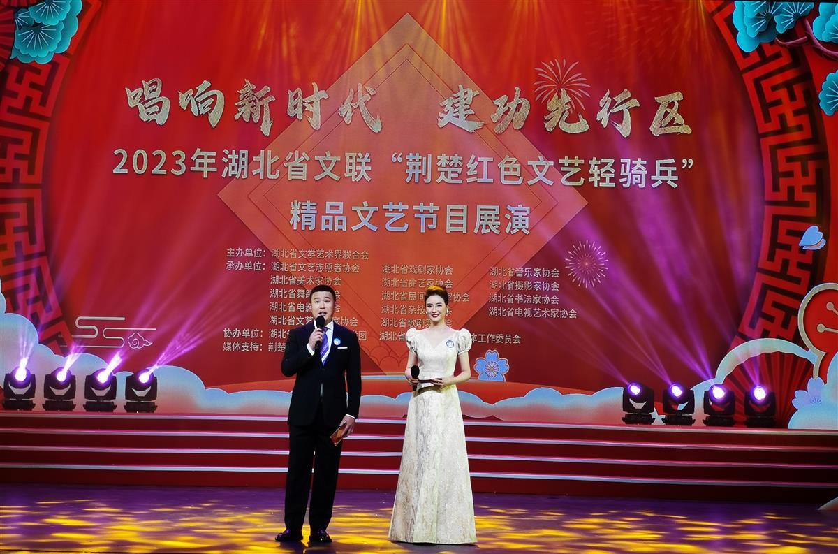 湖北日报讯(记者农新瑜、通讯员聂智园、王晓飞)群星闪耀,歌舞缤纷。2月16日晚,“唱响新时代 建功先行区”2023年湖北省文联“荆楚红色文艺轻骑兵”精品文艺节目展演在武汉珞珈山剧院精彩举办。