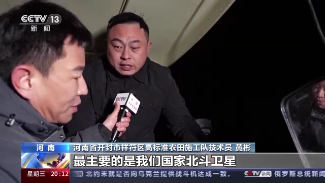 河南省开封市祥符区高标准农田施工队技术员 黄彬:最主要的是我们国家北斗卫星,就相当于我们GPS定位系统,把AB点给它提前输进去以后,就开始自主工作了,减少人力。