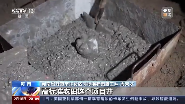 河南省开封市祥符区高标准农田施工队 周天才:现在就是赶这个工期,马上老百姓就要浇麦子了,所以说我们现在抓紧时间要把这个井做好。