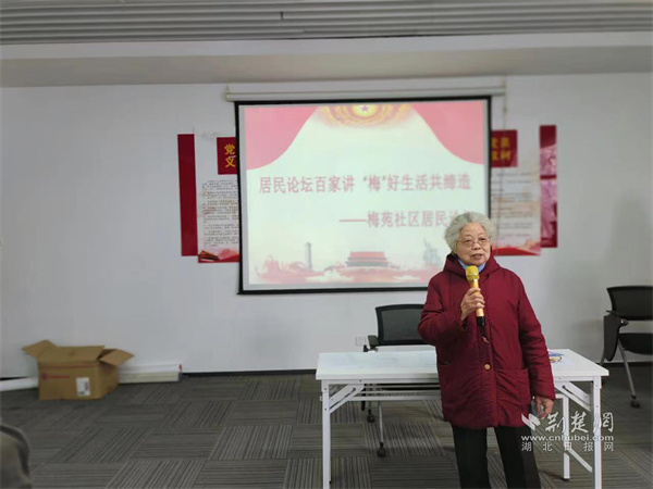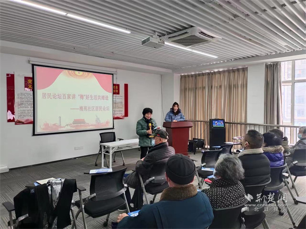 荆楚网(湖北日报网)讯(记者 李燕 通讯员 杨玥)为进一步构建和谐社区,营造人人参与社区治理的良好氛围,2月16日上午,武昌区中南路街道梅苑社区居民讲堂首场开讲,辖区居民、党员、共建单位、社区志愿者代表50余人参加活动。