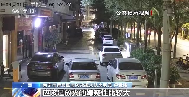 南宁市青秀区消防救援大队火调员 卢受椿:我们还不能够很清楚地看到他的脸部。通过整个视频最后来推论,这两个人应该就是店里面的人员,因为从他们离开,然后再回来开门,搬东西,运东西,到最后发生火灾,到最后离开,都是这两个人,应该是放火的嫌疑性比较大。