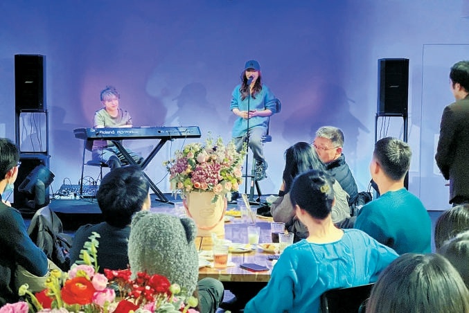 演出结束后的“醉我心者”演后音乐派对上,音乐家、演员们又在咖啡厅中间的小舞台上继续演奏和演唱起来,易立明也参与到和观众的讨论当中。