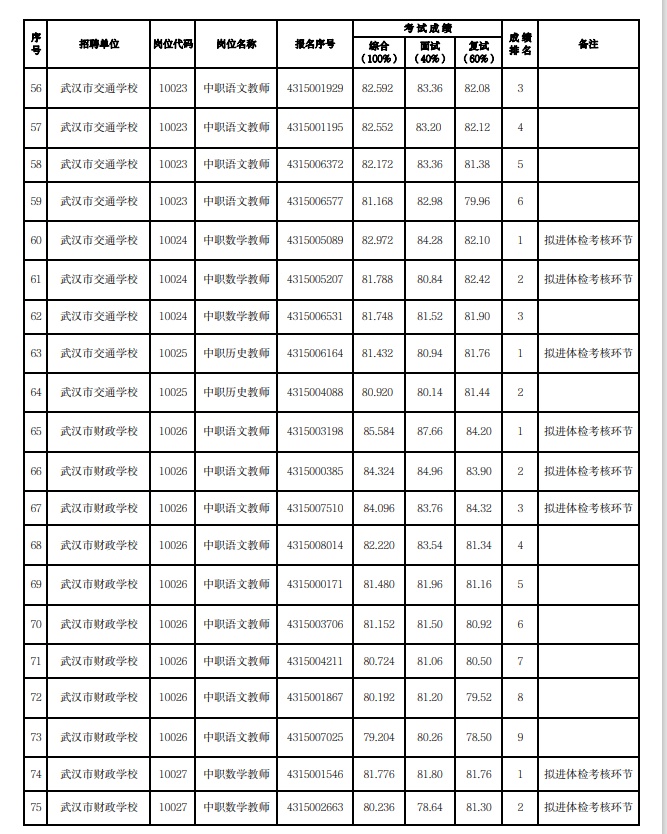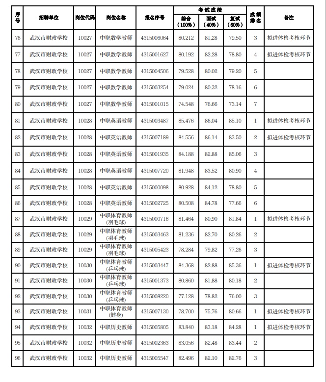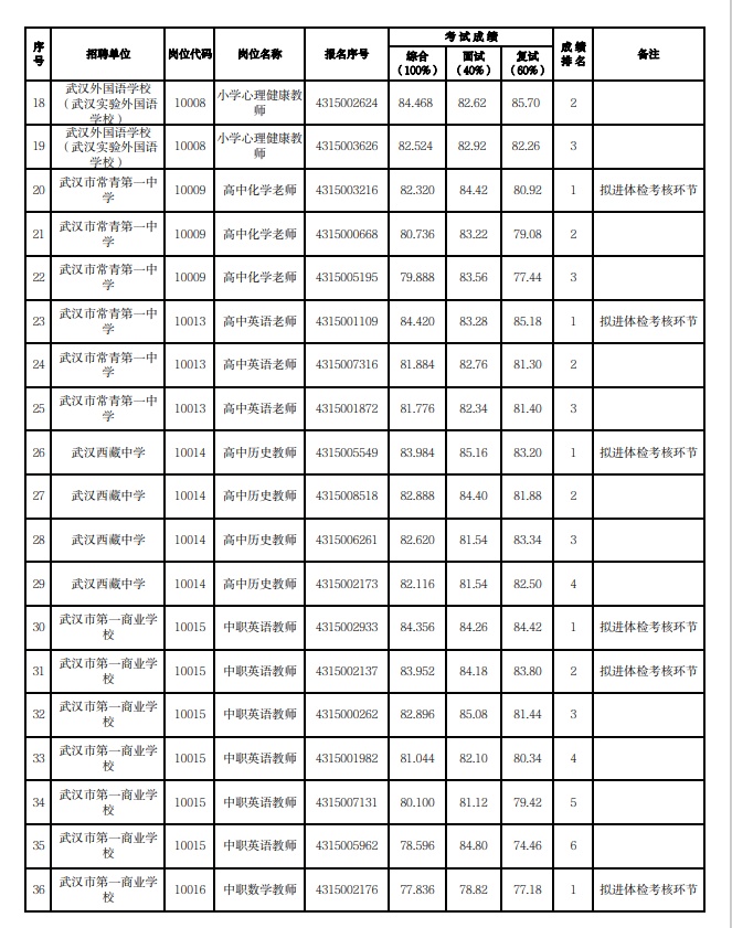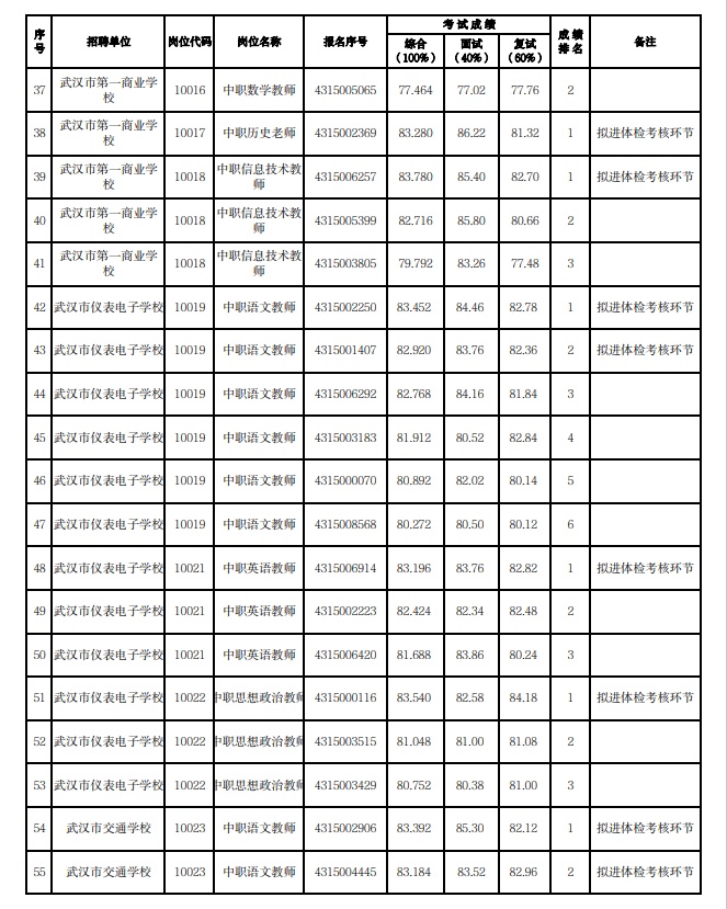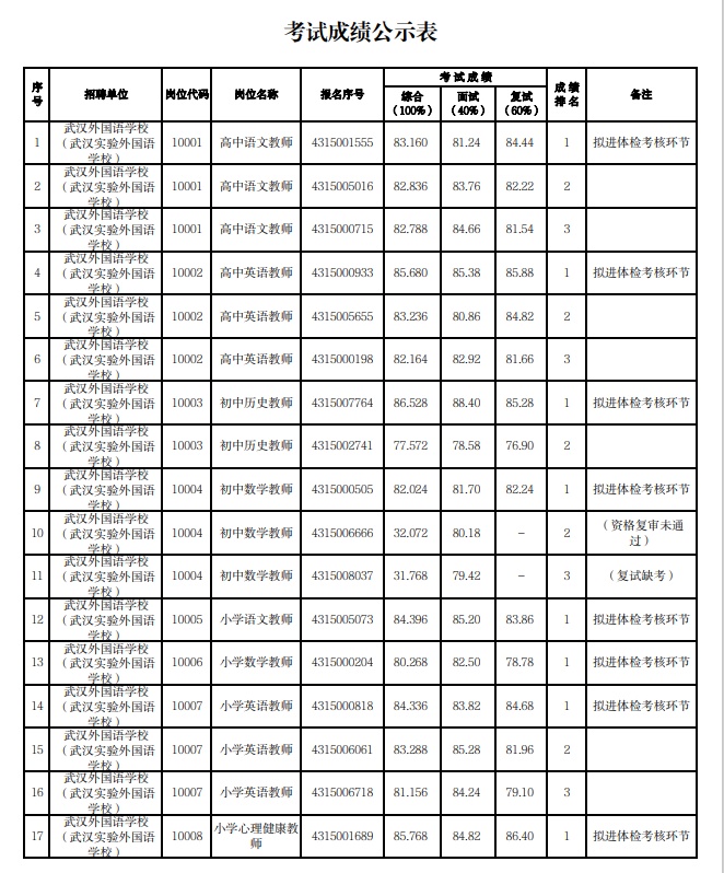 附:武汉市2023年度事业单位公开招聘(教育系统)市教育局直属单位考试成绩公示
