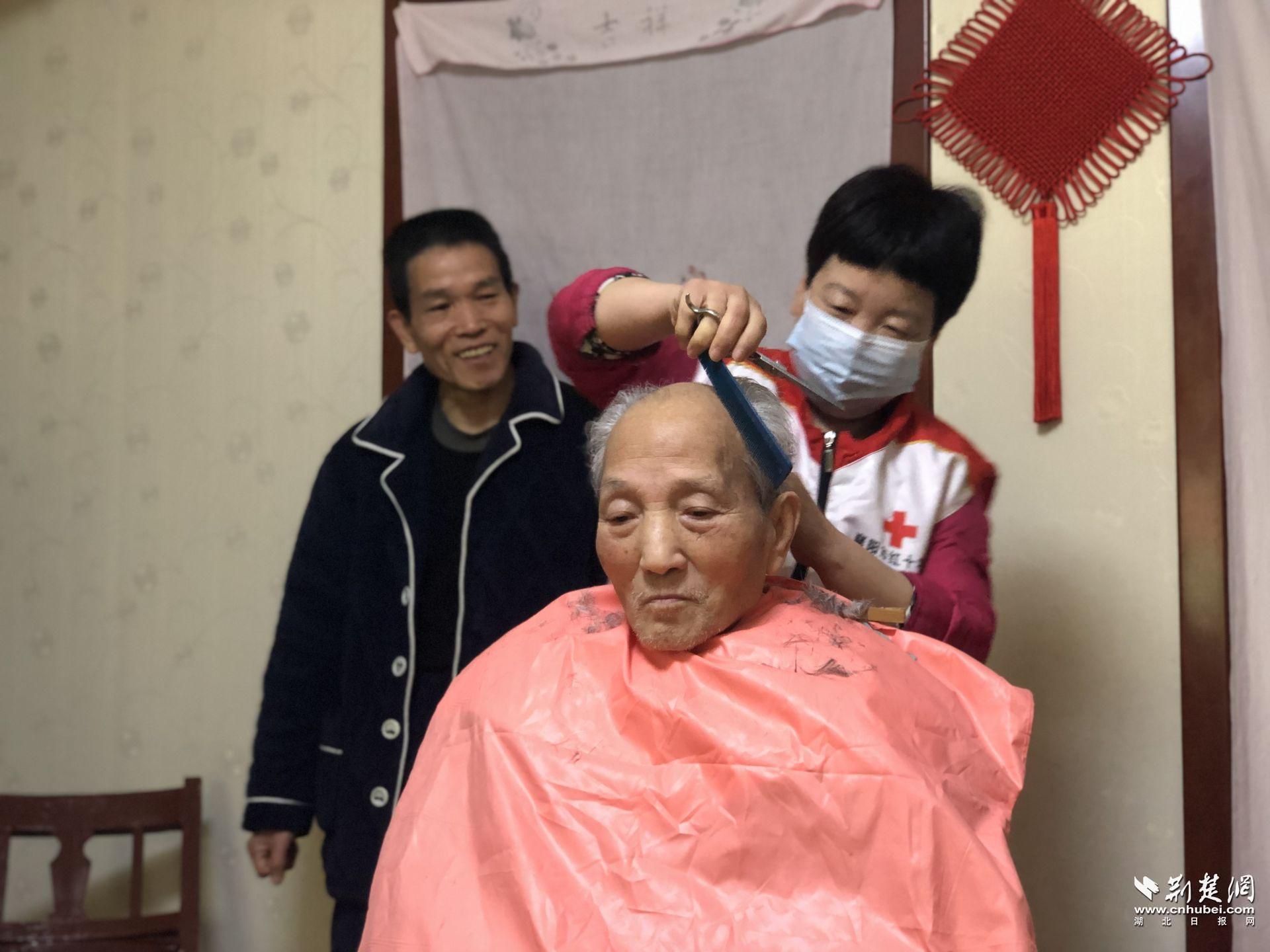 荆楚网(湖北日报网)讯(通讯员黄飞)2月21日,农历二月初二,又到一年“龙抬头”。襄阳市军休一所将市红十字“三献”志愿服务队请到军休干部家中,开展“助老为老 关爱送上门”活动,义务为老干部理发,为军休干部送上祝福。