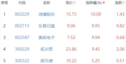 其中,鸿博股份、东易日盛、奥拓电子、拓尔思和硕贝德位列板块涨幅前五位,涨幅分别为10.00%、9.95%、9.94%、9.45%和5.25%。
