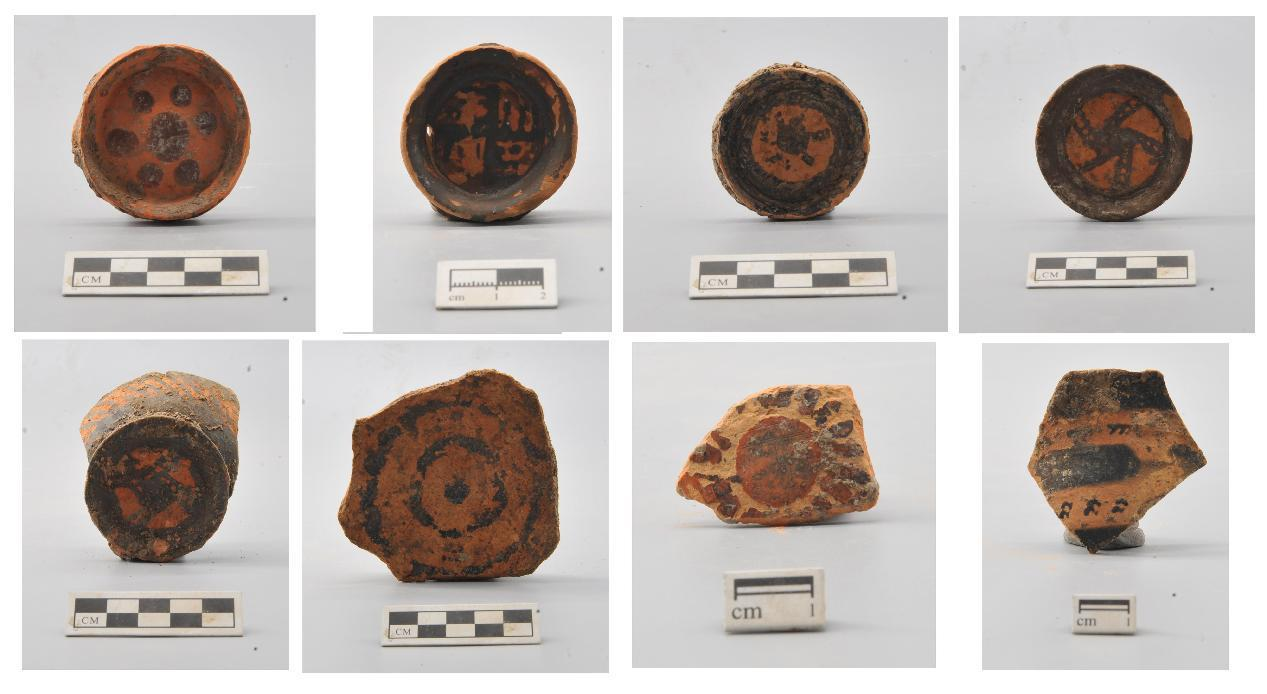 天门唐马台遗址油子岭文化时期彩绘陶片。
