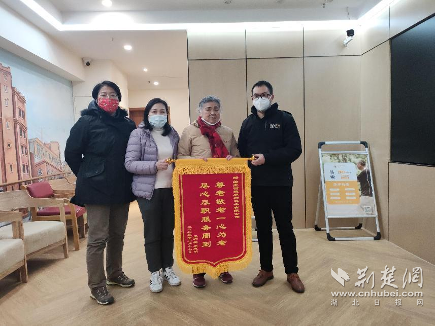 荆楚网(湖北日报网)讯(记者何婧 通讯员刘琍)2月21日下午,家住江汉区花楼水塔街道前进社区前进四路82号的王巧梅老人,给社区送来一面锦旗,表达对街道、社区和佰穗养老服务中心工作人员的感激,她说:“这些年多亏了社区对我们老人的关心和照顾,给我们提供全方位、贴心的居家养老服务,真正让我们实现了老有所依、老有所养。”