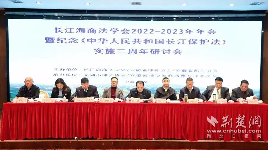 荆楚网(湖北日报网)讯(记者胡文勇 通讯员张雅思、罗美馨)2月27日,长江海商法学会2022-2023年年会暨纪念《中华人民共和国长江保护法》实施二周年研讨会在安徽芜湖开幕。来自武汉大学、华东政法大学、中南财经政法大学、上海海事大学、湖北经济学院等高校的专家学者,以及相关涉长江行政管理单位、港航企业、律师等150余名代表参加会议。
