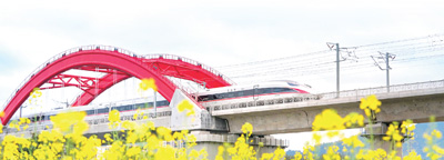 “复兴号”高铁列车在赣深高铁龙南特大桥疾驰而过。朱海鹏摄