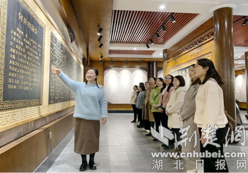 活动最后,大家参观了陆九渊纪念馆,一幅幅定格历史瞬间的珍贵照片、一件件厚重文物、一篇篇详实文献吸引着大家驻足观看,让大家了解了荆门历朝历代勤政爱民、造福一方的清官廉吏事迹。大家仔细了解陆九渊生平事迹,踏访纪念馆的心学文化墙、本心廊、清风轩、乡贤楼、陆夫子祠等每一处人文历史角落,品心学文化、赏廉政格言。
