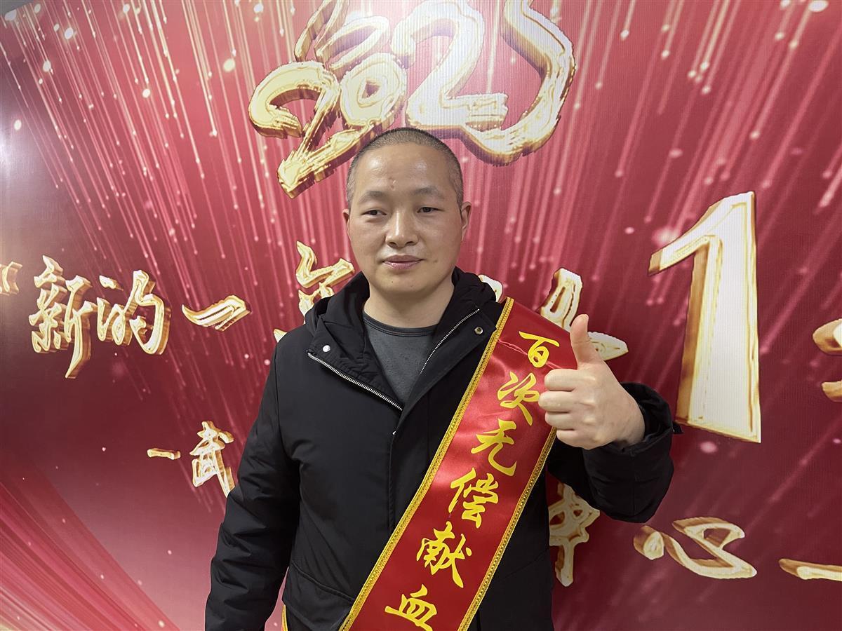 作为“百次无偿献血者”代表,从2005年至今,胡玉锁已坚持无偿献血18年,献血总量达2.77万毫升,其中献全血3800毫升,献血小板119.5个治疗剂量(献1个治疗剂量的血小板相当于200毫升全血),捐献的血液足以救治近150位患者。他表示,想像“热血前辈”一样,坚持献血到60岁。