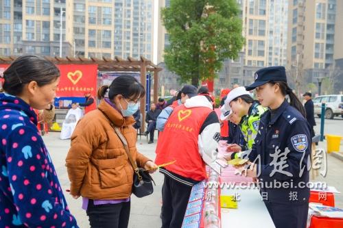 荆楚网(湖北日报网)讯(通讯员 杨怡)3月3日,在第60个学雷锋纪念日来临之际,京山市公安局青年志愿者服务队在共青团京山市委组织的“志愿公益集市”活动中,开展普法宣传活动,传递法治社会正能量,弘扬雷锋精神。同时,京山公安全警时刻将雷锋精神践行在日常工作中,厚植为民情怀,践行为民理念。