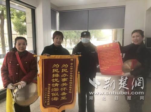 3月1日,京山市民声歌友艺术团敲锣打鼓来到巡特警大队城中路警务站,感谢巡特警队员千方百计帮助找回工作人员遗失的手提袋,对急群众所急、解群众所难的警察同志们表示衷心的感谢。