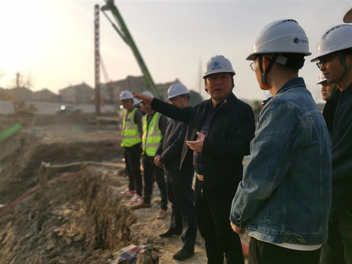 3月6日下午,郭丹东一行调研武穴泵站施工现场