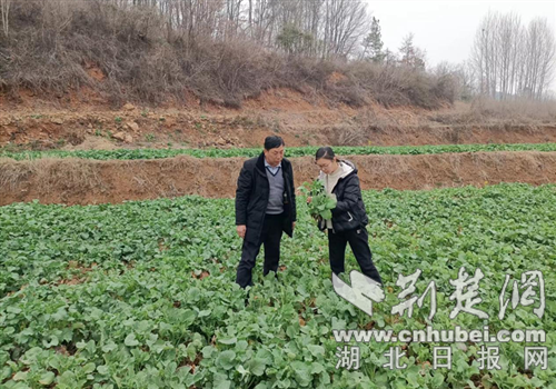 荆楚网(湖北日报网)讯(通讯员 石济华)“一头、两头、三头……”下蹲、翻叶、观察、数虫、记载……3月6日上午,在位于京山市宋河镇白竹村五组的油菜轮作试点项目示范片,该镇农技服务中心驻白竹村科技特派员陈天春正在查看油菜蚜虫和菌核病发生情况。