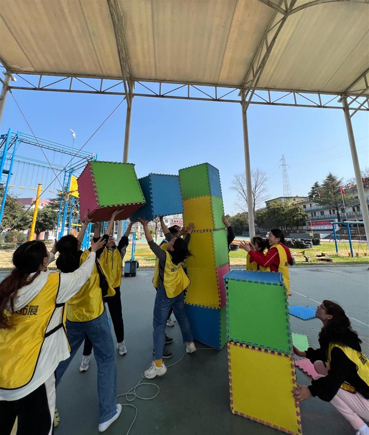 下午,“通天塔”项目难度升级,用泡沫板搭建九层高楼的任务让队员们遭遇一次次失败。但大家并没有放弃,而是协商新策略,优化新方案。在“极限飞盘”项目中,大家认真配对练习,钻研磨练技术,不断提高命中率。