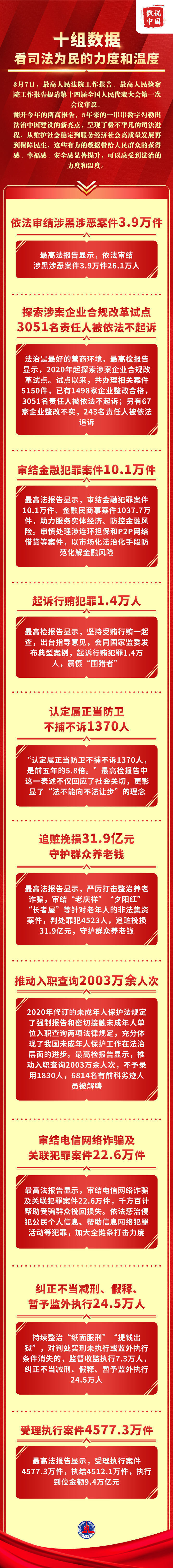 翻开今年的两高报告,5年来的一串串数字勾勒出法治中国建设的新亮点,呈现了极不平凡的司法进程,从维护社会稳定到服务经济社会高质量发展再到保障民生,这些有力的数据带给人民群众的获得感、幸福感、安全感显著提升,可以感受到法治的力度和温度。