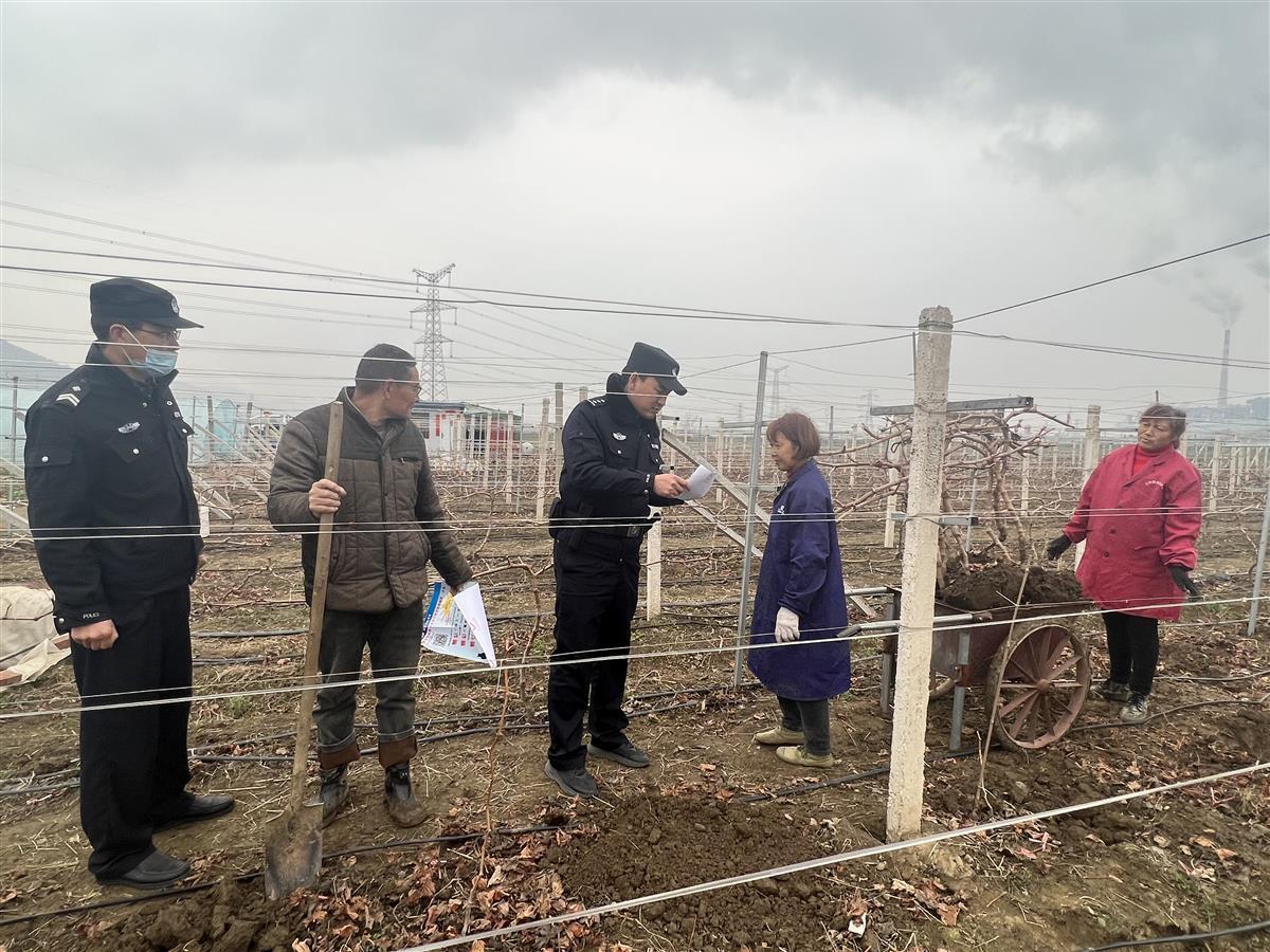 “刘姐,今年准备工作做得怎么样?这段时间接到买农药、化肥的电话,可不敢随便相信哈!”3月7日,在襄城区枣林村某葡萄种植园,余家湖派出所社区民警李永辉正在向种植户询问农资采购、农药喷洒等情况,并通过面对面讲解、发放宣传单的形式,提高种植户安全生产和主动防范意识。据悉,春耕备耕以来,襄城区各农村派出所积极行动、深入田间地头开展系列宣传,提醒农民从正规渠道采购种子、农药、化肥等农用物资,鼓励辖区群众一旦发现销售违禁农药、假农资等线索,积极拨打报警电话,最大限度地维护农资消费者合法权益,确保农民用上放心种、放心药、放心肥,帮助农民促产增收。