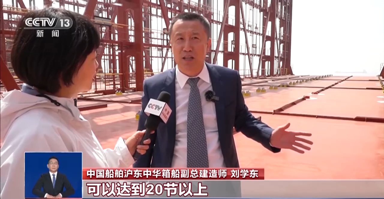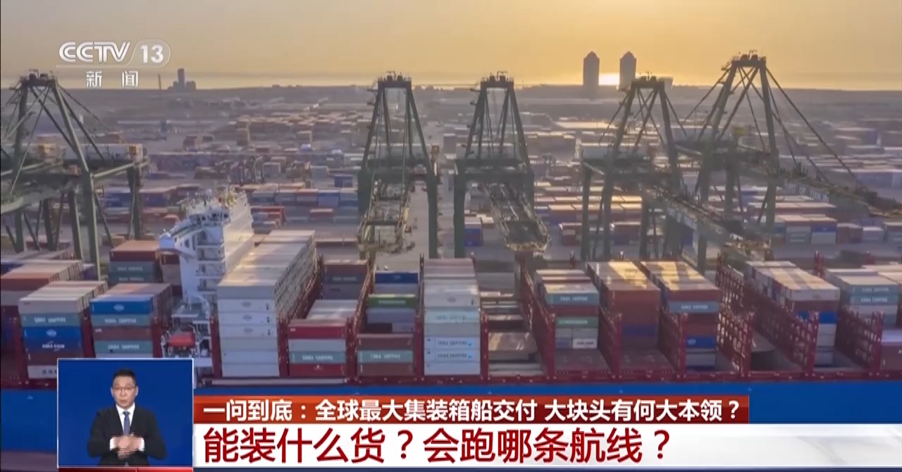 中国船舶沪东中华箱船副总建造师 刘学东:绝大多数成品都是采用集装箱运输的,比如电视机、冰箱、洗衣机、微波炉,甚至一些工业设备,当然它要符合体积,不能超过单位集装箱的最大空间限制,这样就可以实现模块化运输。还可以运送鲜果,我们这艘船可以装载2000个冷藏集装箱,可以保证冷链的运输。